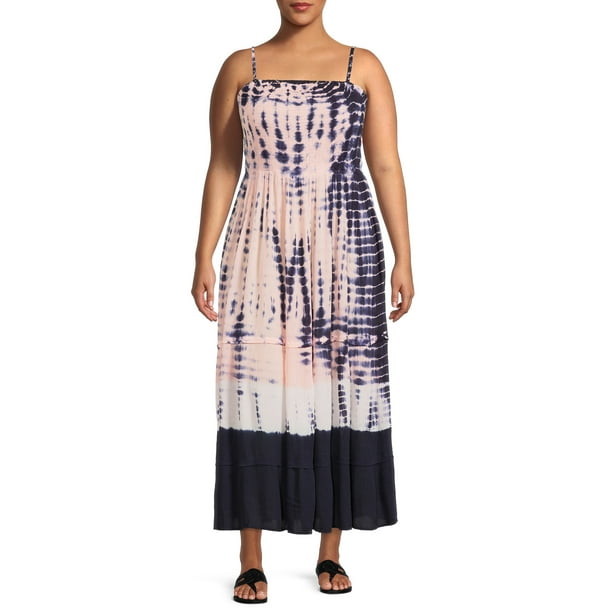Romantic Gypsy Women S Plus Size Tie Dye Smocked Maxi Dress Walmart Com